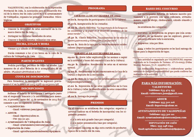 La Asociación para el Desarrollo de la Sierra Sur de Jáen (ADSUR) colabora en las I JORNADAS MICOLÓGICAS que se celebrarán los próximos 15 y 16 de noviembre en Valdepeñas de Jaén.