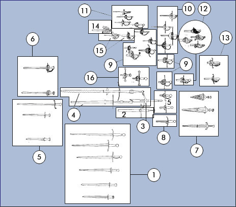 10. Espadas con taza. 11. Espadas de Corte o de Salón. 12 Esclavones